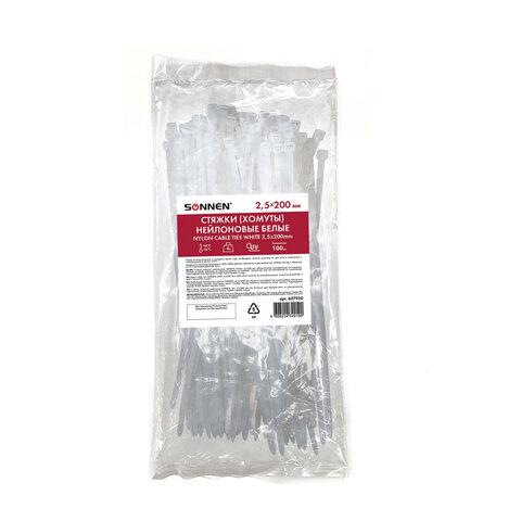 Стяжка (хомут) нейлоновая сверхпрочная POWER LOCK, 2,5х200 мм, КОМПЛЕКТ 100 шт., белая, SONNEN, 607920