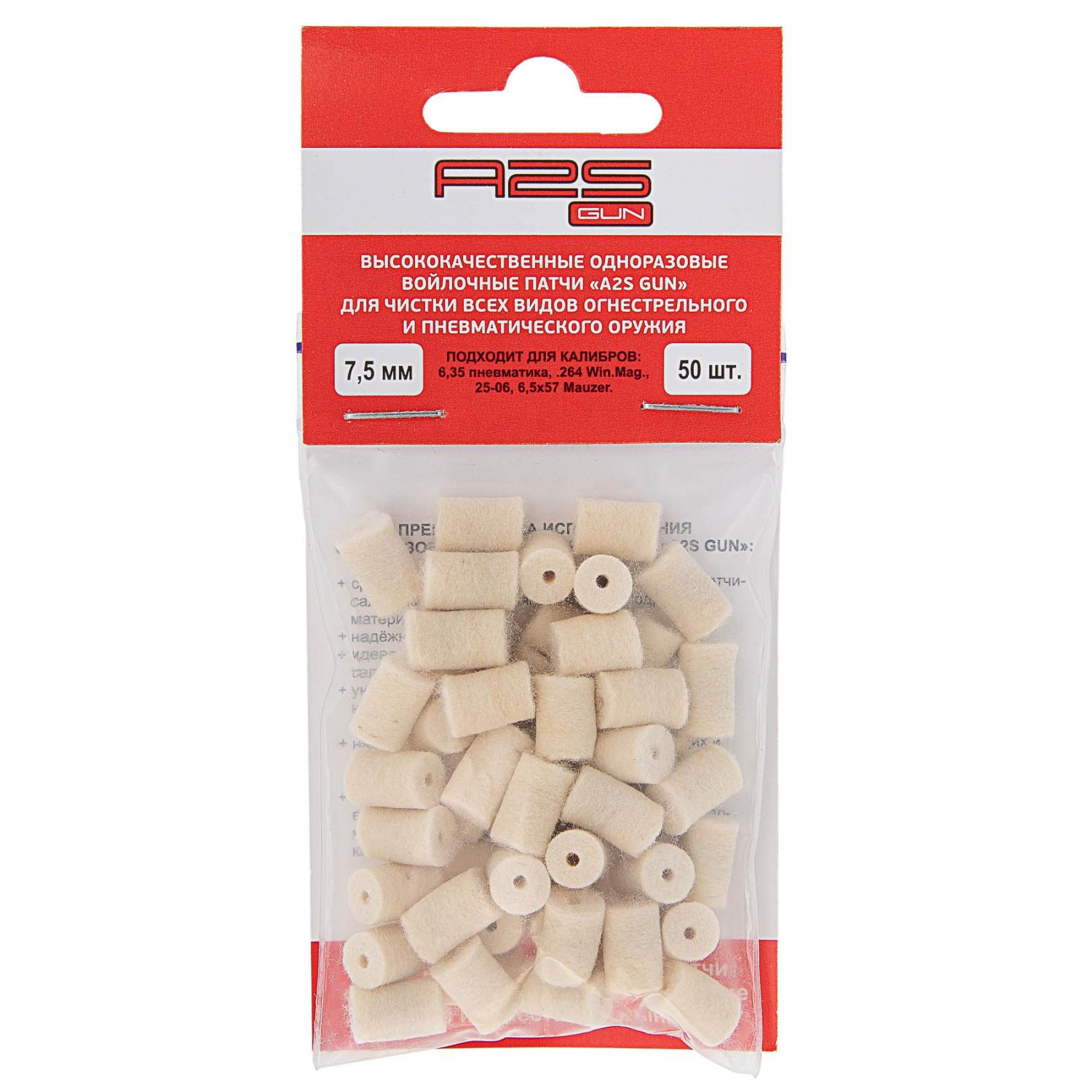 Патчи войлочные A2S GUN Ø 75мм (260Rem;264WM;65x47;635мм пневматика) (50шт)