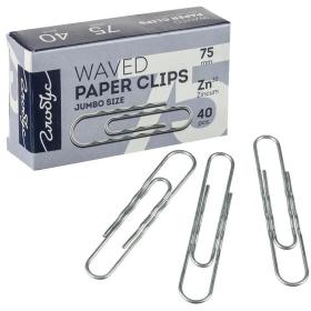 Скрепки большие 75 мм, оцинкованные, гофрированные, 40 шт., в картонной коробке, GLOBUS, Г75-40Ц, Г 75-40 Ц