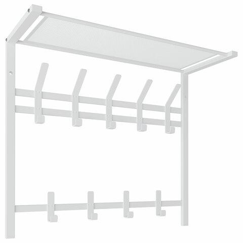 Вешалка настенная с полкой 2 яруса "Торонто-22", 585х670х270 мм, 9 крючков, металл, белая, ВСПТ22 Б