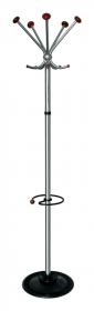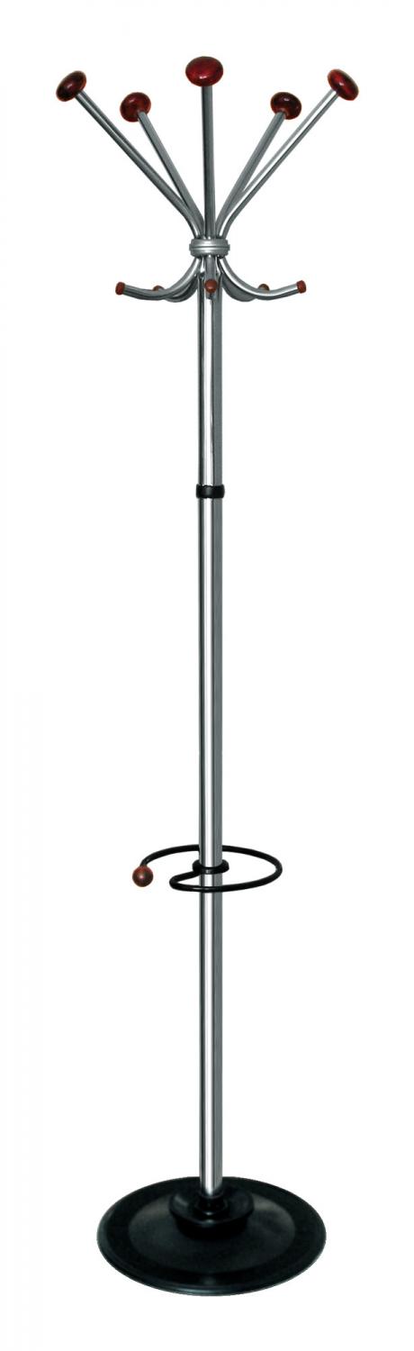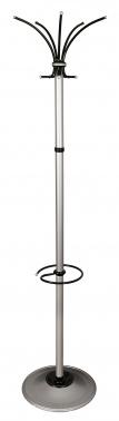 Вешалка напольная Бюрократ Класс (Ц) ТМЗ 606 / ALUMINIUM серебристый основание круг наконечники черный крючки двойные для верхней одежды метал. (упак.:1шт)
