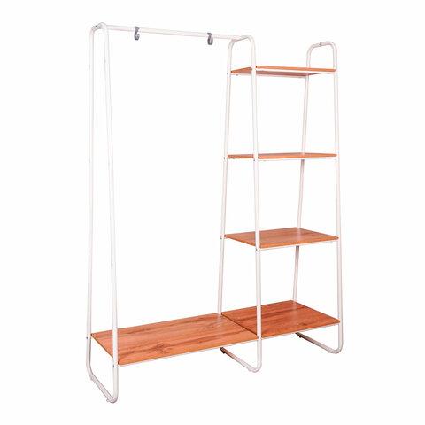Вешалка-стеллаж "Скандинавия-1", 1470х1100х385 мм, 5 полок, металл / ЛДСП, белая / дуб, ГСС1 Б