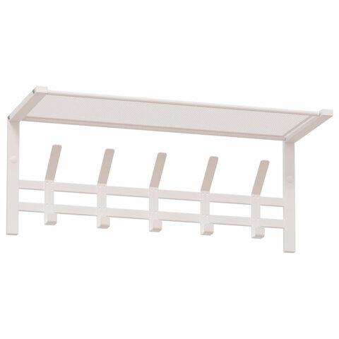 Вешалка настенная с полкой "Торонто-21", 270х670х270 мм, 5 крючков, металл, белая, ВСПТ21 Б