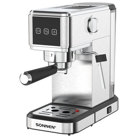 Кофеварка рожковая со встроенным капучинатором SONNEN CM-2032, сенсор, 1,2 л, 1350 Вт, 19 бар, 457881