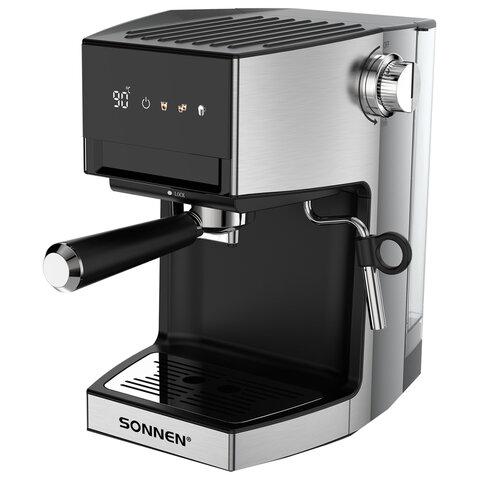 Кофеварка рожковая с дисплеем SONNEN CM-2066, ручной капучинатор, сенсор, 1 л, 950 Вт, 19 бар, 457882
