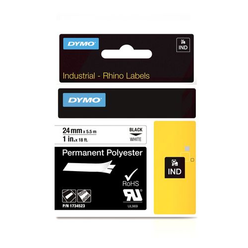 1734523 | S0773830 Полиэстровая лента для принтеров DYMO Rhino 24мм x 55м с постоянным клеем выдерживает экстремальные температуры цвет - белый (Original)