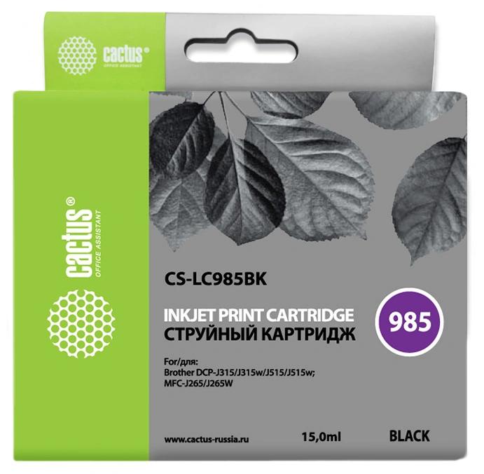 Картридж струйный Cactus CS-LC985BK черный (15мл) для Brother DCPJ315W / DCPJ515W / MFCJ265W с чипом