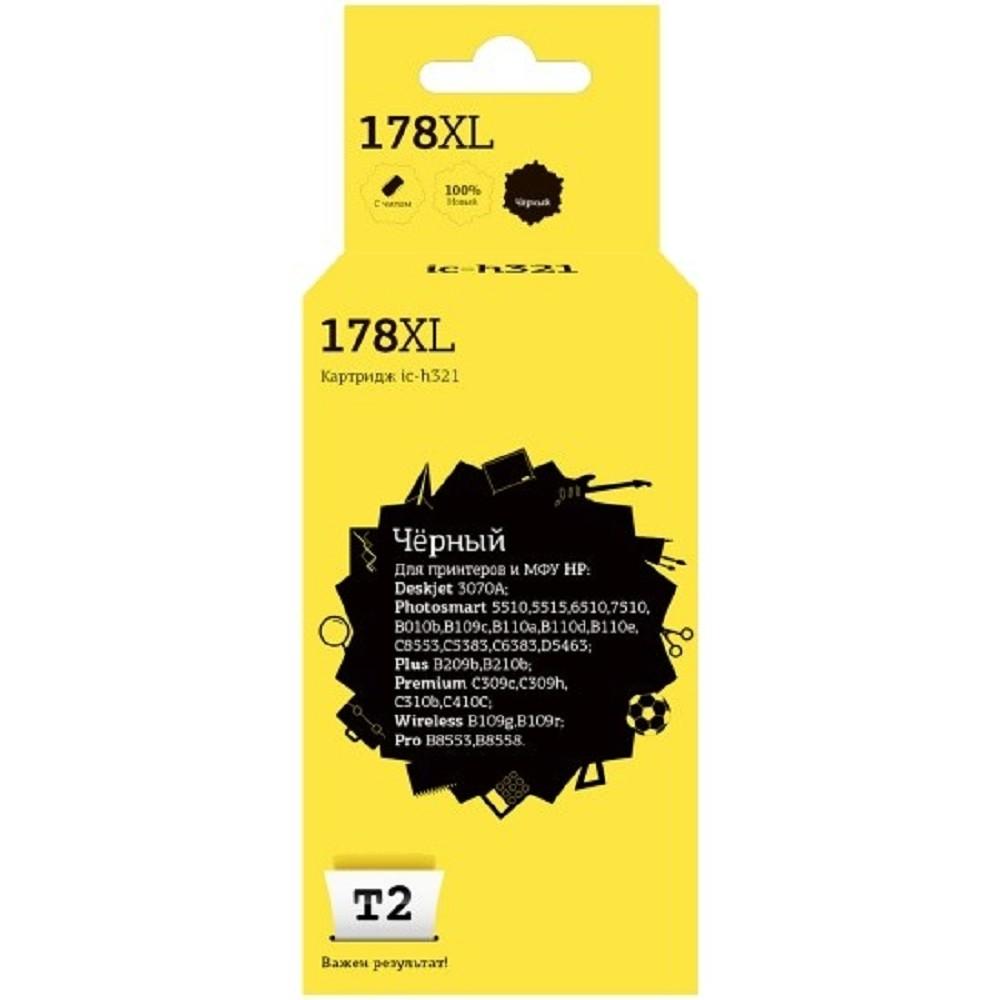 T2 CB321 / CN684HE Картридж (IC-H321) №178XL для HP Deskjet 3070A / Photosmart 6510 / 7510 / B110 / C8583, черный, С ЧИПОМ, 550 стр.