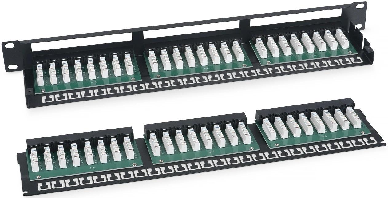 Панель Hyperline PPHD-19-24-8P8C-C5E-110D Патч-панель высокой плотности 19", 0.5U, 24 порта RJ-45, категория 5E, Dual IDC