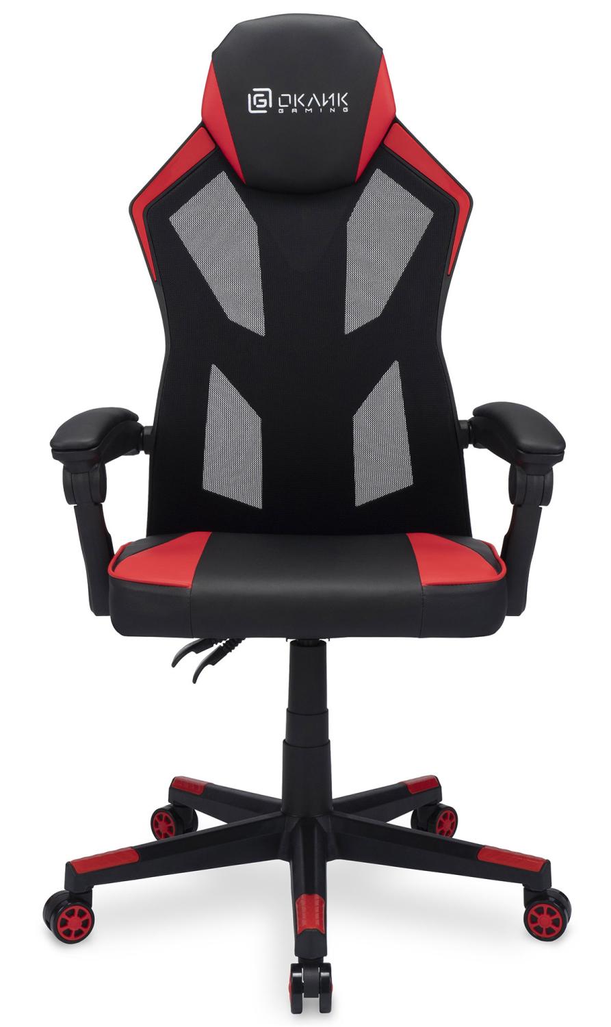 Кресло игровое Оклик -121G черный / красный сиденье черный / красный искусст.кожа / сетка с подголов. крестов. пластик черный