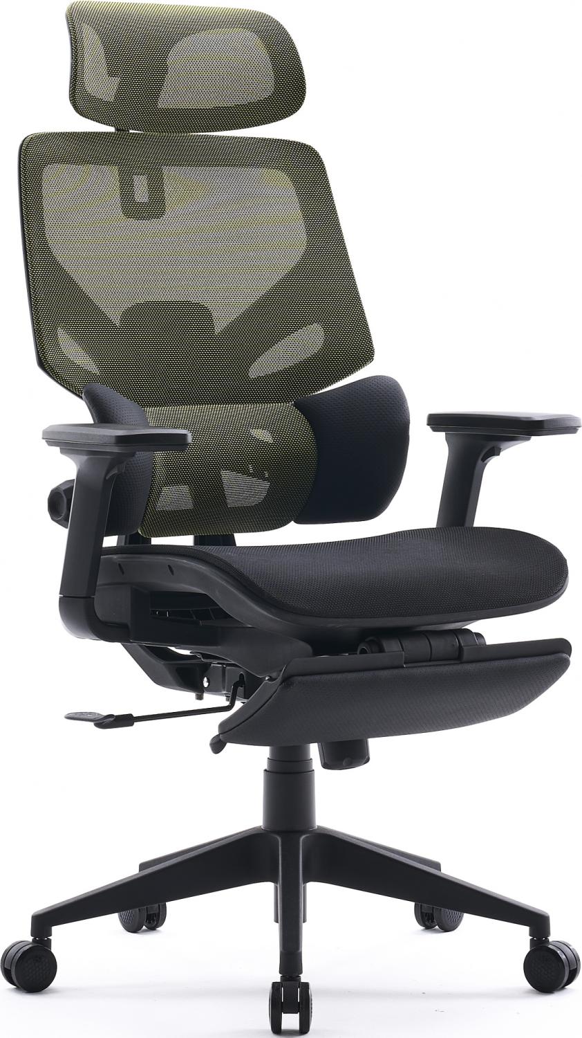 Кресло Cactus CS-CHR-MC01-LGNBK салатовый сиденье черный сетка / ткань с подголов. крестов. пластик подст.для ног