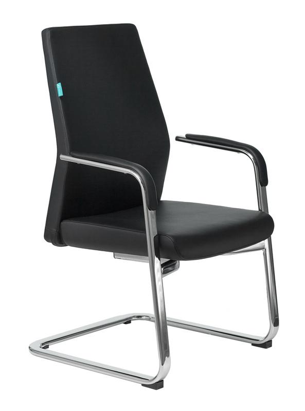 Кресло Бюрократ _JONS-LOW-V черный кожа низк.спин. полозья металл хром