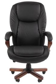 Кресло офисное CHAIRMAN СН 408, НАГРУЗКА до 150 кг, дерево, натуральная кожа, черное, 7030084