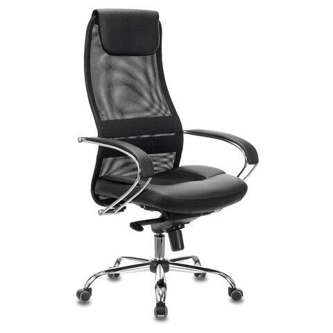 Кресло офисное BRABIX PREMIUM "Stalker EX-609 PRO", хром, мультиблок, ткань-сетка / экокожа, черное, 532416, EX609PRO_532416