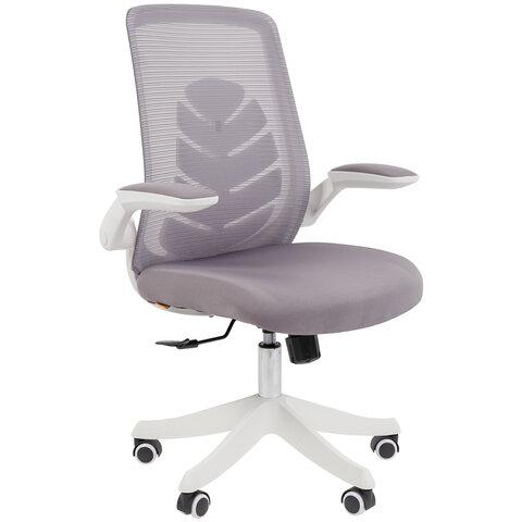 Кресло Chairman CH 565, откидные подлокотники, синхромеханизм, пластик белый, сетка / ткань, серое, 7146049