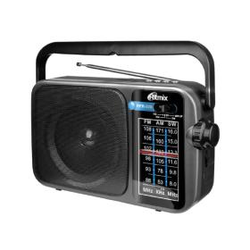 RITMIX RPR-102 CARBON {ФМ радиоприёмник 4-диапазонный (FM / AM / SW1 / SW2), с разъемом для наушников, вход AUX, воспр с micro SD карт пам. или USB флэш носителей, д / у}