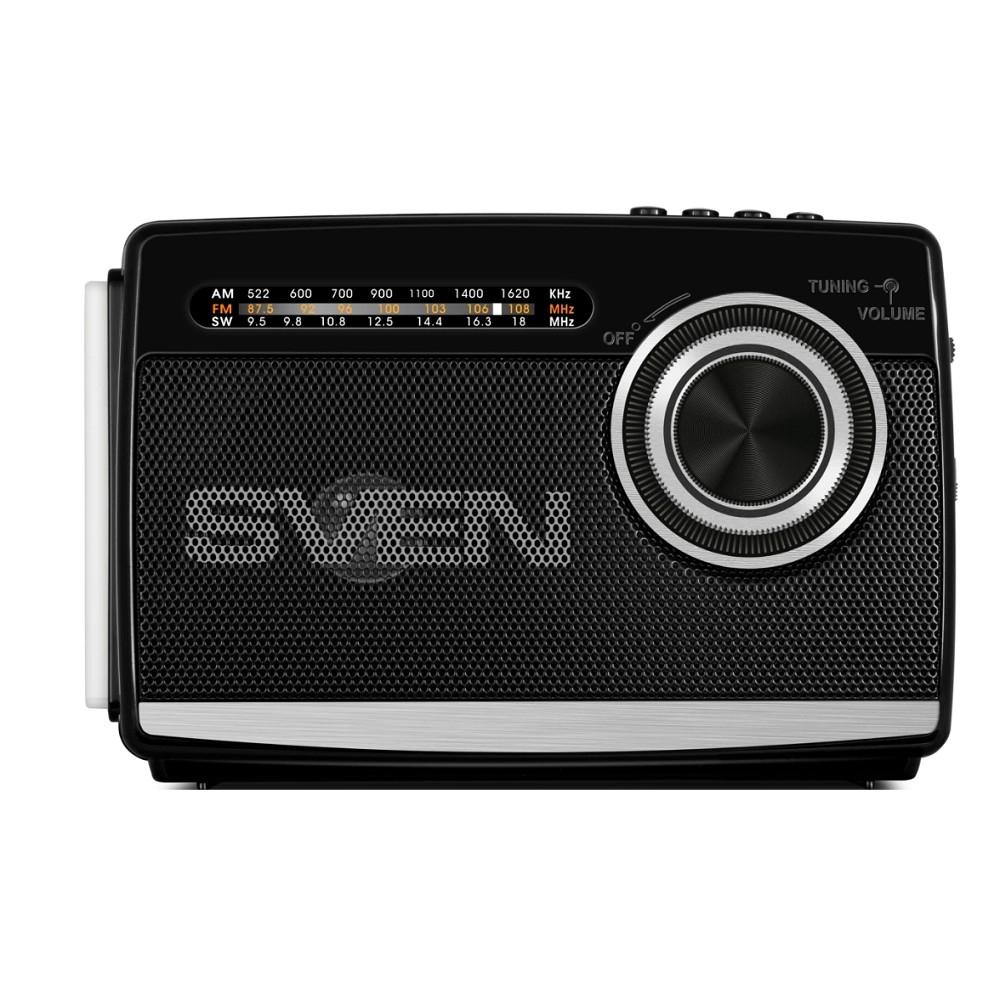SVEN АС SRP-155, чёрный (3 Вт, Bluetooth, FM / AM / SW, USB, microSD, фонарь, встроенный аккумулятор)