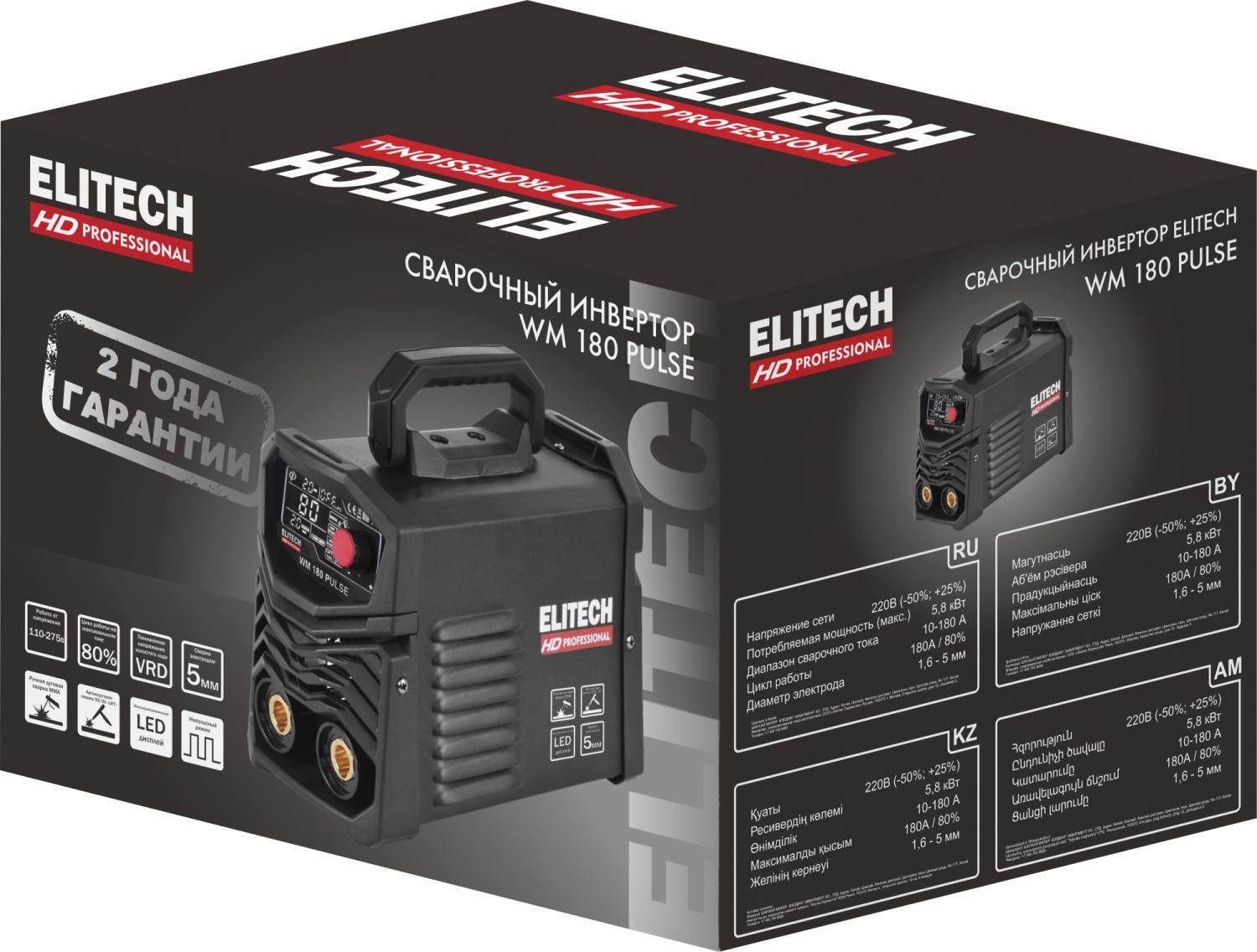 Сварочный аппарат Elitech WM 180 Pulse инвертор MMA / TIG-Lift 5.8кВт