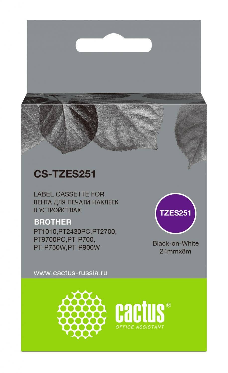 Картридж ленточный Cactus CS-TZES251 TZe-S251 черный на белом 24x8 для Brother 1010 / 1280 / 1280VP / 2700VP