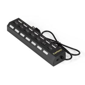 Exegate EX293978RUS USB-Хаб (концентратор) ExeGate DUB-72SW (кабель-адаптер USB2.0 --> 7xUSB2.0, кнопки включения / отключения для каждого порта, Plug&Play, черный)