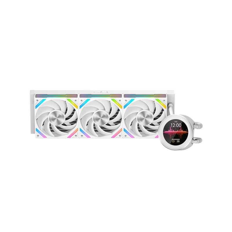 Водяное охлаждение для процессора / Water Cooling System SAMA Q60 White (360mm, LED temp., White, ARGB / Fans: 3x120mm, 86CFM, 30dBA, 2600RPM / Pump height 64mm, 30dBA, 2800RPM, Rad thickness 27mm / S: 1851, 1700, 1200, 20XX, 115X, AM5, AM4)