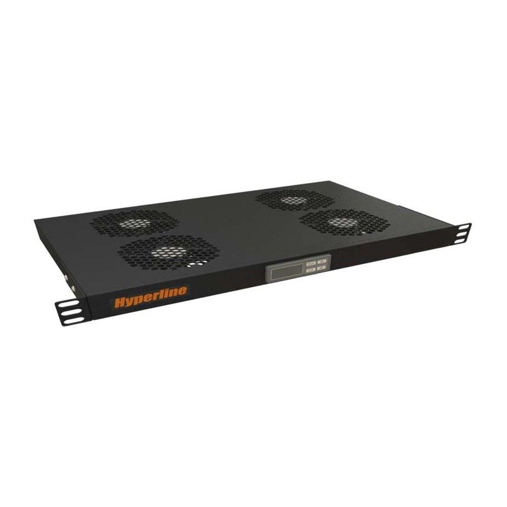 Вентиляторный модуль Hyperline Hyperline TRFA-WB-MICR-4F-RAL9004 Модуль вентиляторный 1U 19", глубиной 290мм, с термостатом и 4-я вентиляторами, номинальная мощность 70.40 Вт, датчик температуры с кабелем, кабель питания C13-Schuko 1.8м, цвет черный (RAL