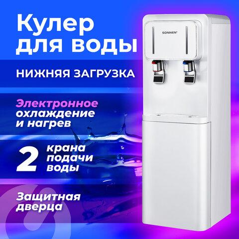 Кулер для воды SONNEN FSE-02W, напольный, НАГРЕВ / ОХЛАЖДЕНИЕ ЭЛЕКТРОННОЕ, 2 крана, белый, 456172