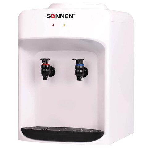 Кулер для воды SONNEN TSE-02WT, настольный, НАГРЕВ / ОХЛАЖДЕНИЕ ЭЛЕКТРОННОЕ, 2 крана, белый, 455413