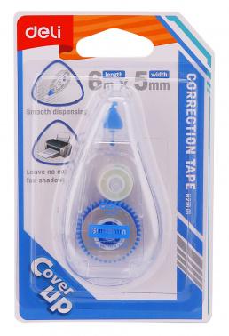Лента коррект. Deli E8101 6мх5мм ассорти корпус белый блистер