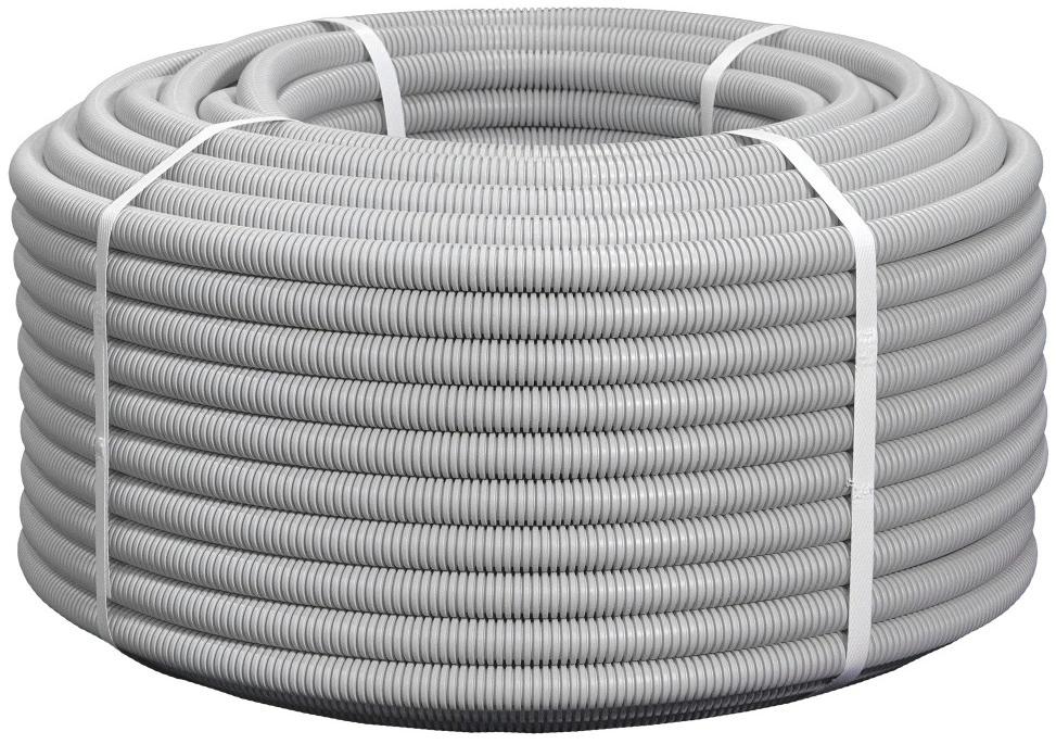 Труба ПВХ гибкая гофр. д.32мм, сверхтяжёлая с протяжкой, 25м, цвет серый