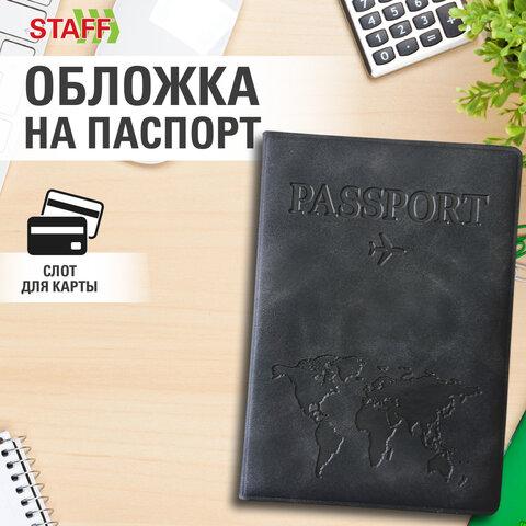 Обложка для паспорта "Passport Map", мягкая экокожа, графитовая, STAFF, 238875
