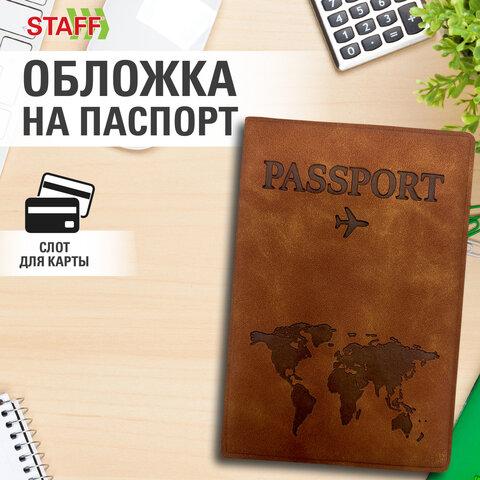 Обложка для паспорта "Passport Map", мягкая экокожа, коричневая, STAFF, 238876