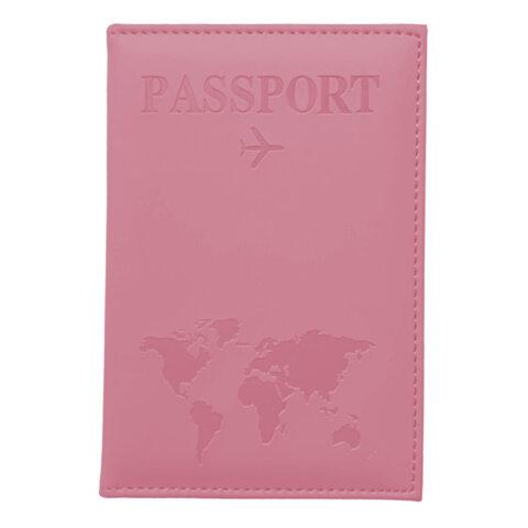 Обложка для паспорта "Passport map", экокожа soft-touch, розовая, STAFF, 238759