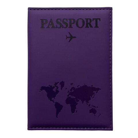 Обложка для паспорта "Passport map", экокожа soft-touch, фиолетовая, STAFF, 238762