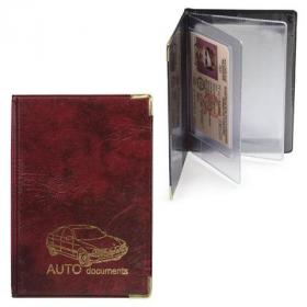 Обложка для автодокументов, 128х92 мм, ПВХ под кожу, конгревное тиснение, цвет ассорти, А5-12
