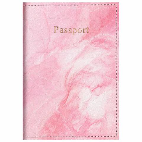 Обложка для паспорта искусственная кожа, принт "Soft Marble", пудрово-розовый, STAFF, 238870