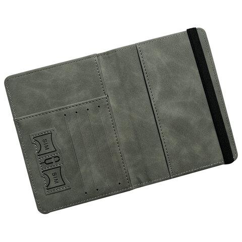 Обложка для паспорта и документов с защитой от считывания, 9 карманов, резинка, экокожа, серая, BRAUBERG, 238749