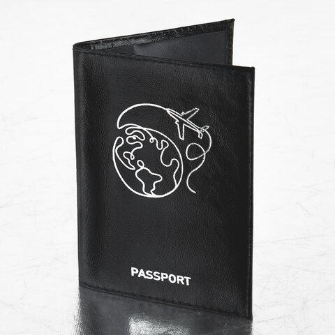 Обложка для паспорта натуральная кожа "наплак", тиснение серебром "Airplane", черная, BRAUBERG, 238212