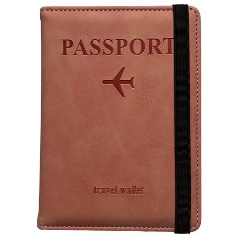 Обложка для паспорта и документов с защитой от считывания, 9 карманов, резинка, экокожа, розовая, BRAUBERG, 238750