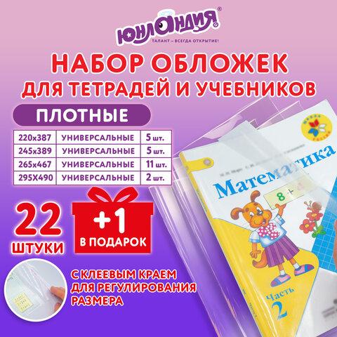 Обложки ПЭ для тетрадей и учебников, НАБОР "22 шт. + 1 шт. в ПОДАРОК", ПЛОТНЫЕ, 100 мкм, универсальные, прозрачные, ЮНЛАНДИЯ, 272704