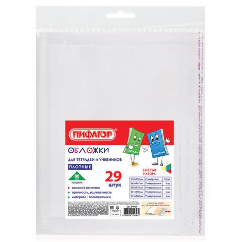 Обложки ПП для тетрадей и учебников, КЛЕЙКИЙ КРАЙ, НАБОР 29 шт., ПЛОТНЫЕ, 80 мкм, ПИФАГОР, 274120