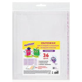 Обложки ПВХ для тетрадей и учебников младших классов, НАБОР 36 шт., ПЛОТНЫЕ, 120 мкм, универсальные, прозрачные, BRAUBERG, 274115