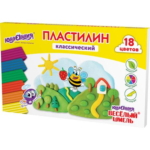 Пластилин классический ЮНЛАНДИЯ "ВЕСЁЛЫЙ ШМЕЛЬ", 18 цветов, 360 грамм, стек, ВЫСШЕЕ КАЧЕСТВО, 106432