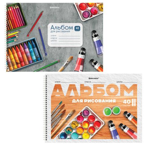 Альбомы д / рис. ДЭК, А4, 40 л., КОМПЛЕКТ 2 шт., гребень, обложка картон, BRAUBERG, 200х290 мм, "Классика", 107740