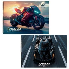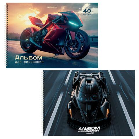 Альбомы д / рис. ДЭК, А4, 40 л., КОМПЛЕКТ 2 шт., гребень, глянцевый лак, BRAUBERG, 200х290 мм, "Авто / Мото", 107741