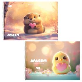 Альбомы для рисования ДЭК, А4, 40 л., КОМПЛЕКТ 2 шт., гребень, обложка картон, BRAUBERG, 200х290мм, "Animals", 107746