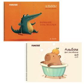Альбомы для рисования ДЭК, А4, 40 л., КОМПЛЕКТ 2 шт., гребень, выборочный лак, FUNSTER, 200х290 мм, "Животные", 107751