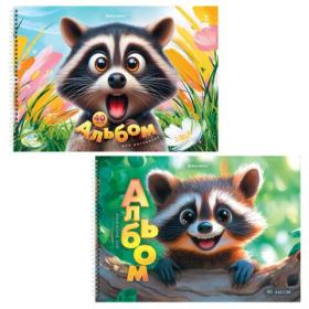 Альбомы д / рис. ДЭК, А4, 40 л., КОМПЛЕКТ 2 шт., гребень, глянцевый лак, BRAUBERG, 200х290 мм, "Енот", 107738