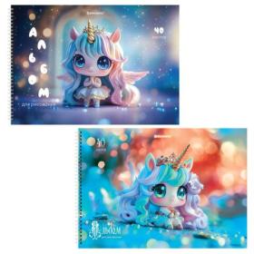 Альбомы для рисования ДЭК, А4, 40 л., КОМПЛЕКТ 2 шт., гребень, глянцевый лак, BRAUBERG, 200х290мм, "Единорожки", 107749