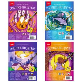 Набор для росписи по дереву 3D, 3 заготовки 24х19 см, АССОРТИ, краски, кисть, LORI